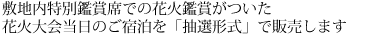 | プラン内容 | 敷地内特別鑑賞席(自由席)での花火鑑賞 |