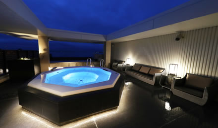 見上げれば星が輝く夜のジャグジーも、ライトアップが施され幻想的な空間に。
