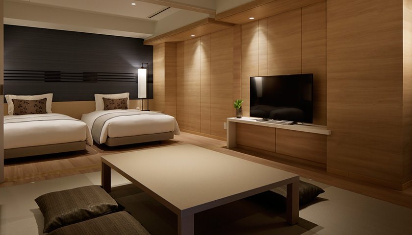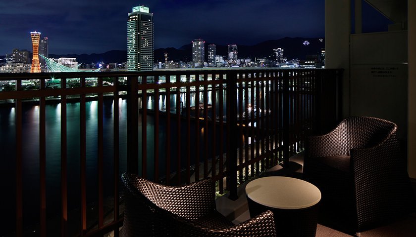 全室テラス付オーシャンビューの神戸港を望む和モダンの客室