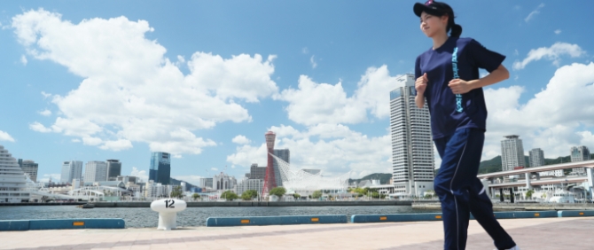 三宮からシャトルバスに乗り5分ほどで到着する「神戸みなと温泉蓮」。駅から陽射しを気にすることなく到着し、運動後の心地よい疲れを感じながら駅に向かうバスは、駅近よりも快適。