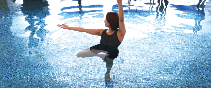 厚生労働省による健康増進施設認定基準を満たしたプールで行うため、水の清潔さや安全面において未経験者にも最適。また水中でチャンレンジするポーズは、無理なく関節の可動域を広げて筋力を高め、肉体に適度な負荷をかけつつ腰や膝にかかる負担を軽くしてくれます。ポージングやタイミングなどは経験豊富な講師がサポートするため、安心して行えます。